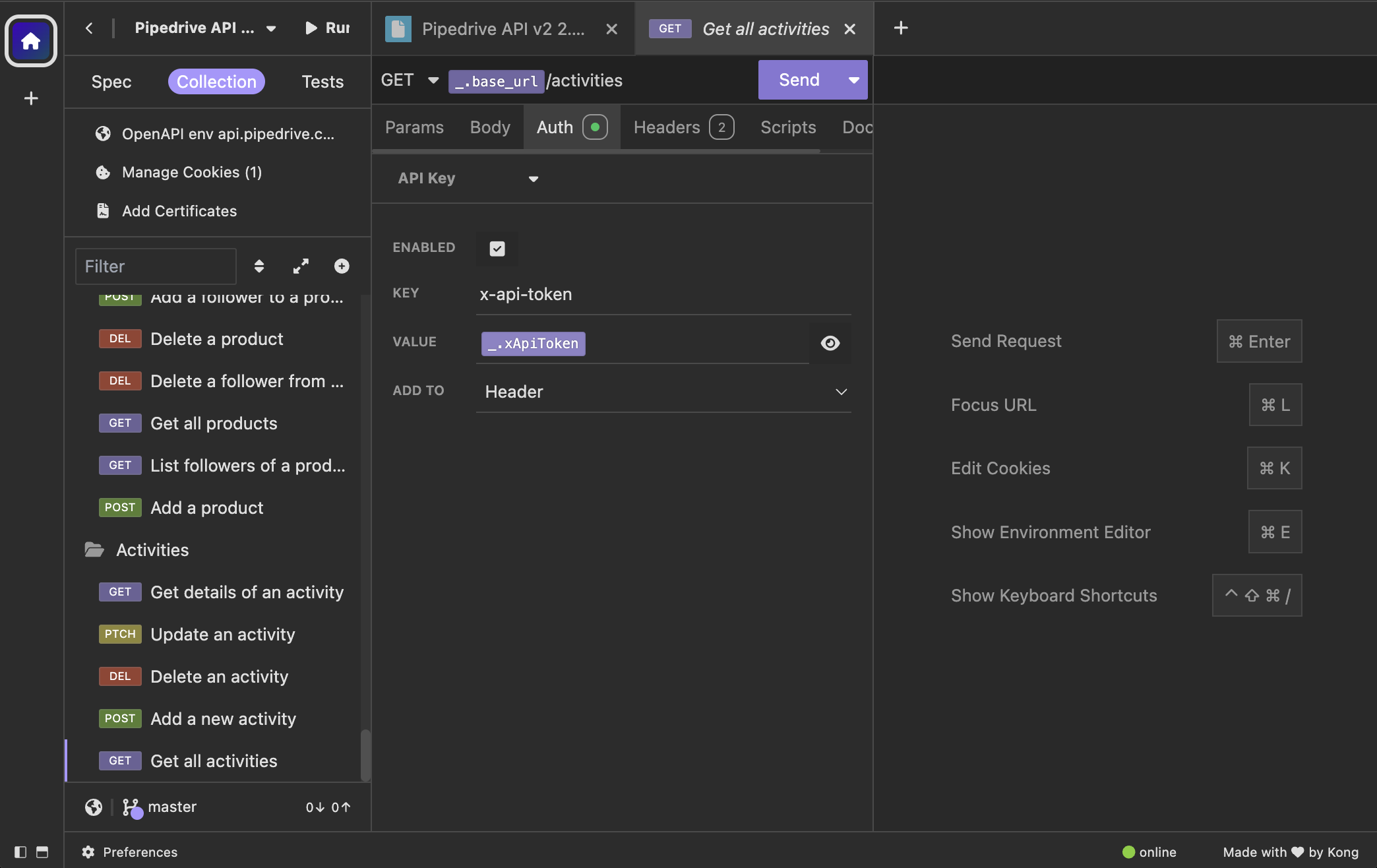 Pipedrive API in Postman or Insomnia